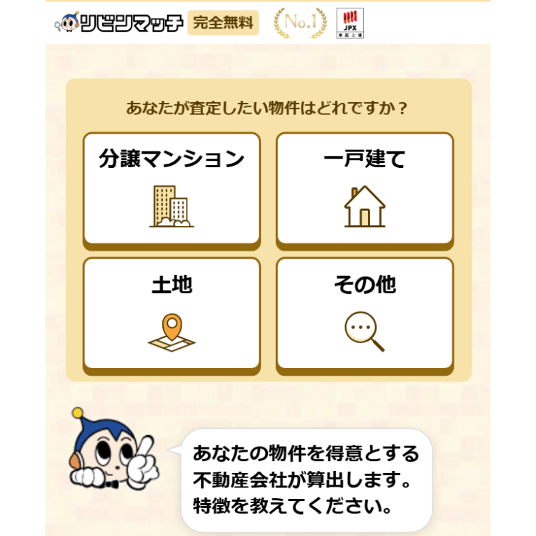 まずは最初の画面において、あなたの所有する物件タイプをタップ(クリック)してください。