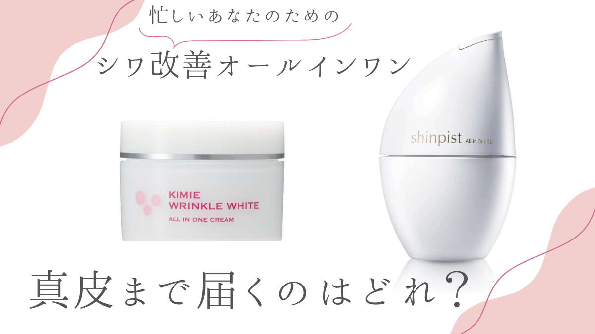 キミエリンクルホワイト、シンピストともに、シワ改善・シミ予防の有効成分として、ナイアシンアミドを含む医薬部外品という点は同じですが、有効成分が真皮層まで浸透することが認められているのは、シンピストだけです。
